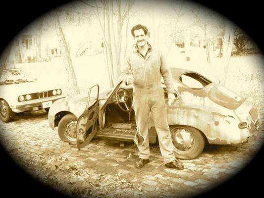 An early photo of Borat with his prized Porsche 356-A Coupe! |
