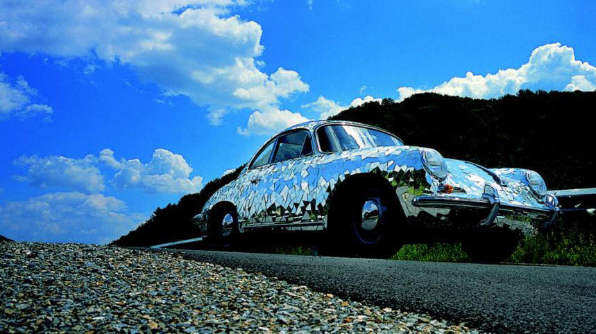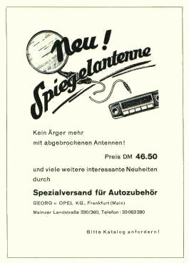 | A radio antenna build into an exterior rear view mirror. From a mid-1950's Christophorus magazine! |