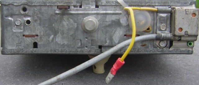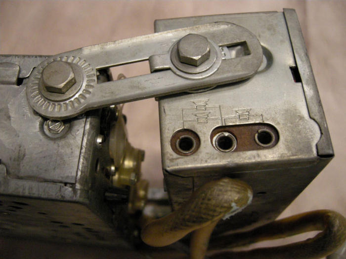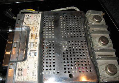 4 holes lower left for speakers, ID tag: D series, serial #800773, 6/12v. |