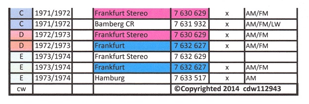 1973 (MY 1973). Blaupunkt Koln AM/FM/LW/SW. Blaupunkt Bamberg AM/FM/LW. Blaupunkt Lubek CR AM/FM Mono Cassette. Blaupunkt Ludwigshafen AM/FM. Blaupunkt Frankfurt AM/FM/LW/SW. |