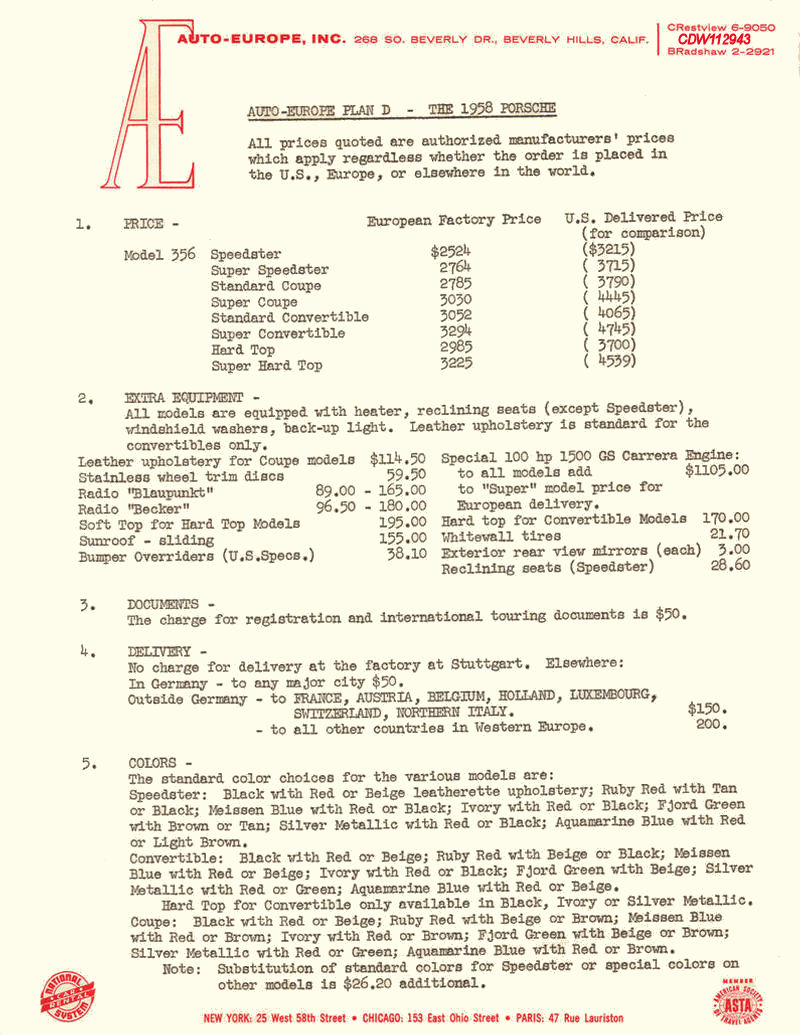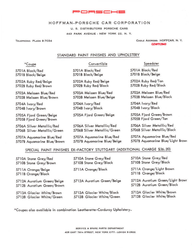 Note* Additional colors added 12/28/04, Porsche Price-List-Export P1, January 1, 1957.